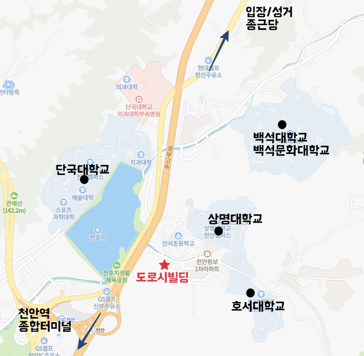 단국대학교와 상명대학교, 호서대학교의 중간지점에 위치합니다.